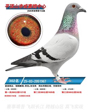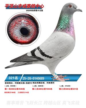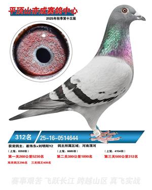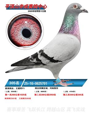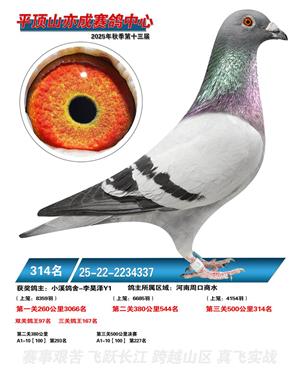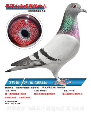 河南平顶山亦成公棚2025年秋决赛获奖鸽1-500名