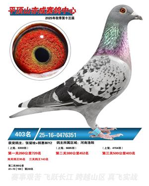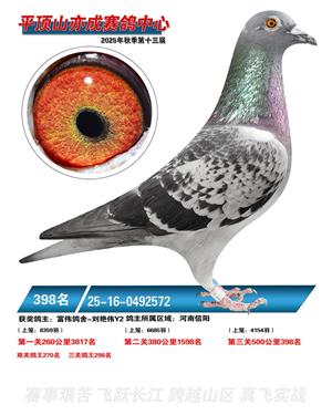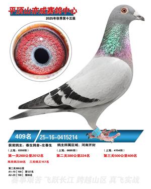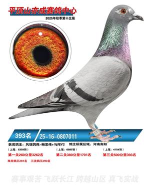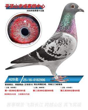河南平顶山亦成公棚2025年秋决赛获奖鸽1-500名