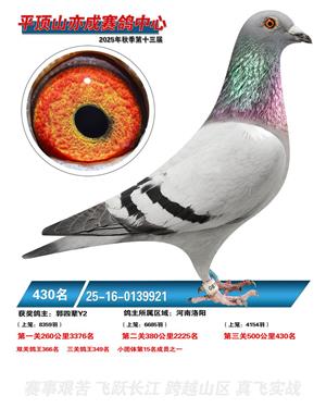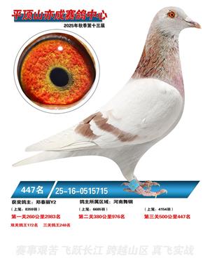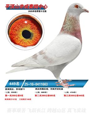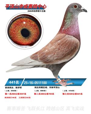 河南平顶山亦成公棚2025年秋决赛获奖鸽1-500名