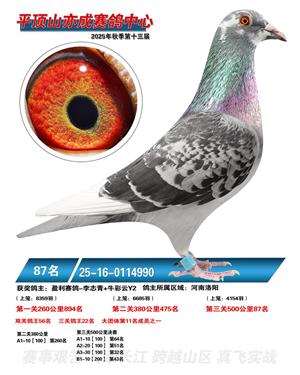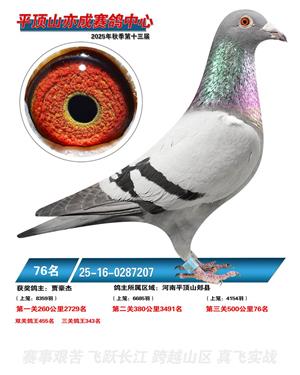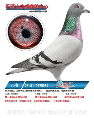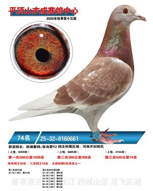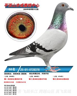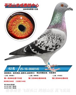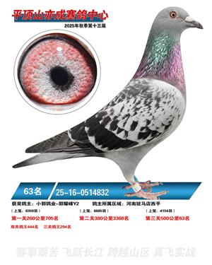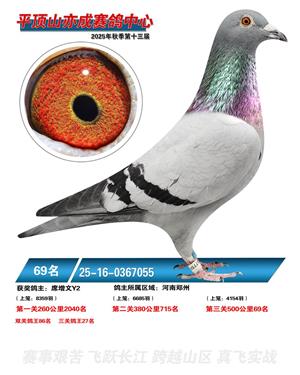 河南平顶山亦成公棚2025年秋决赛获奖鸽1-500名