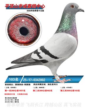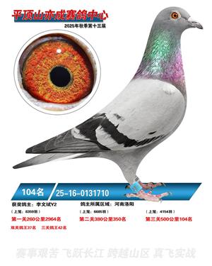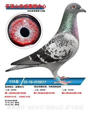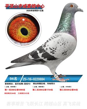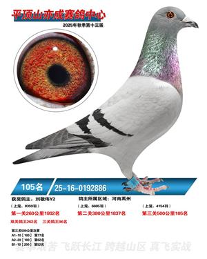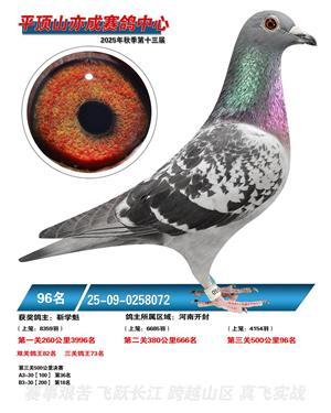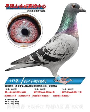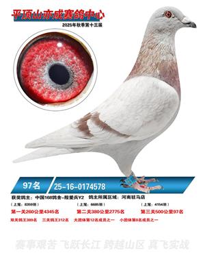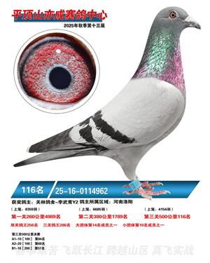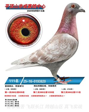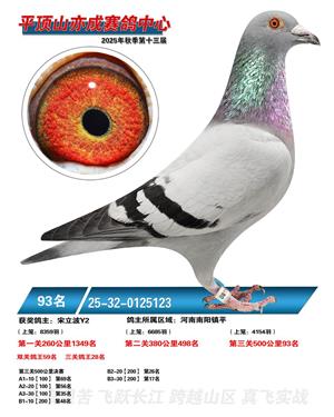 河南平顶山亦成公棚2025年秋决赛获奖鸽1-500名