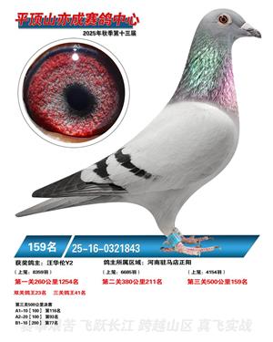 河南平顶山亦成公棚2025年秋决赛获奖鸽1-500名