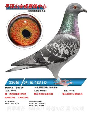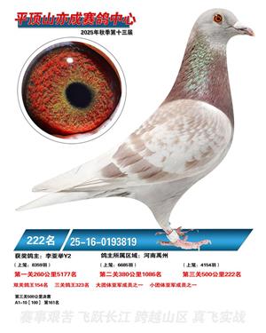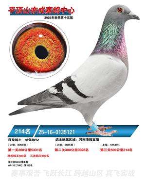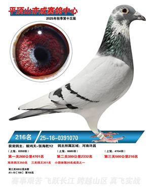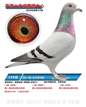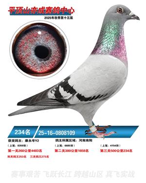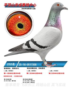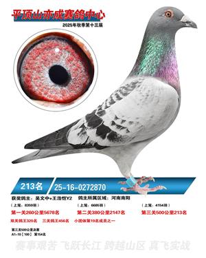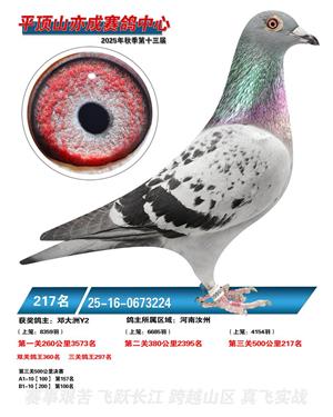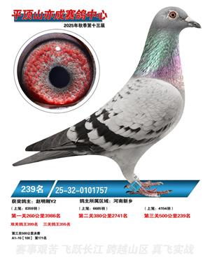 河南平顶山亦成公棚2025年秋决赛获奖鸽1-500名