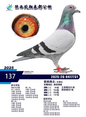 陕西凤翔秦都公棚2025年决赛获奖鸽照片