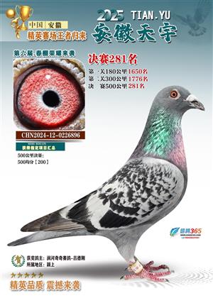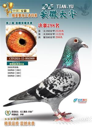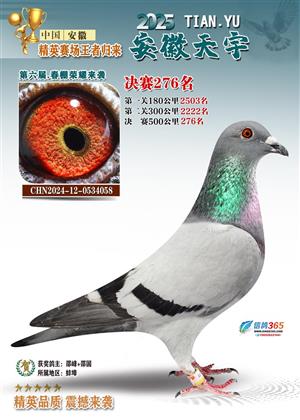 安徽天宇赛鸽中心(春棚)2025年决赛获奖鸽照片