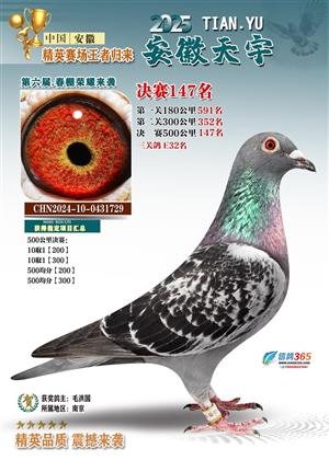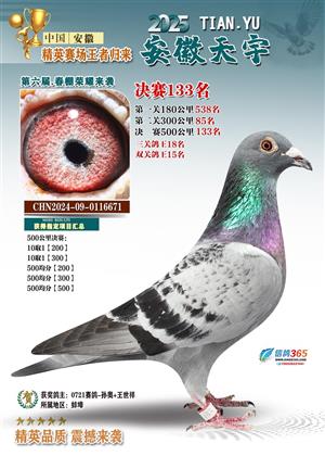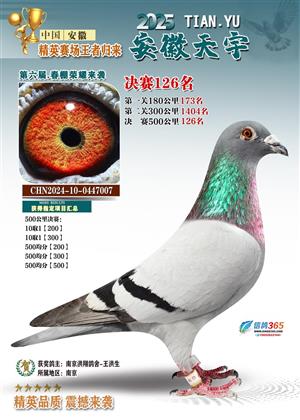 安徽天宇赛鸽中心(春棚)2025年决赛获奖鸽照片