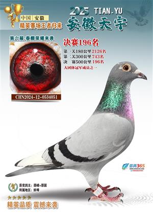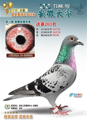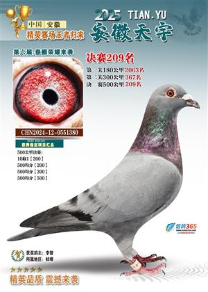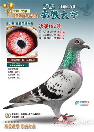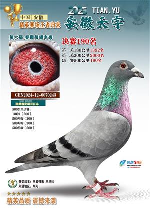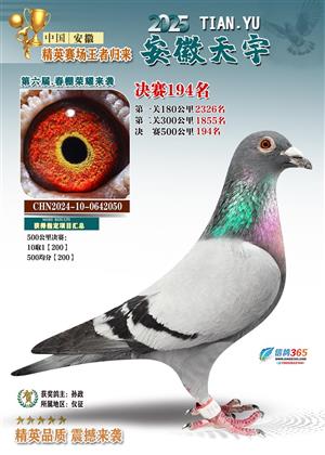 安徽天宇赛鸽中心(春棚)2025年决赛获奖鸽照片