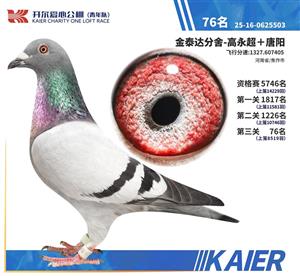 开尔爱心公棚(青年队)第七届竞翔大奖赛决赛获奖鸽赏析