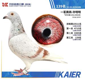 开尔爱心公棚(青年队)第七届竞翔大奖赛决赛获奖鸽赏析