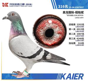 开尔爱心公棚(青年队)第七届竞翔大奖赛加站赛获奖鸽赏析