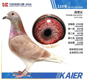 开尔爱心公棚(青年队)第七届竞翔大奖赛加站赛获奖鸽赏析