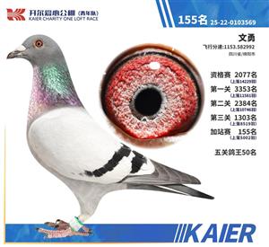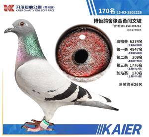 开尔爱心公棚(青年队)第七届竞翔大奖赛加站赛获奖鸽赏析
