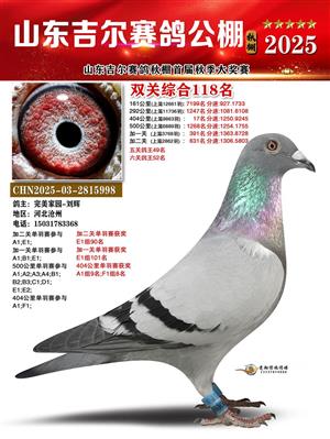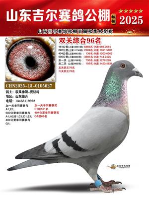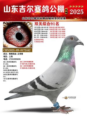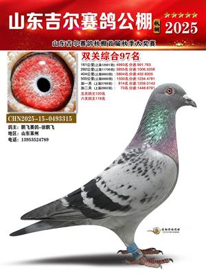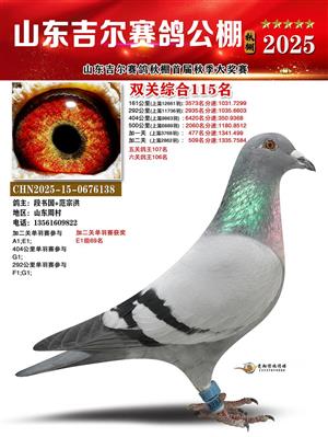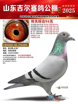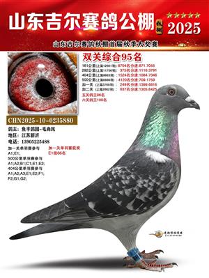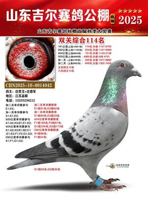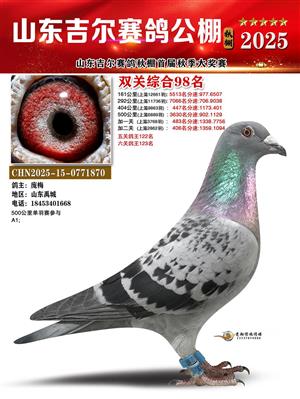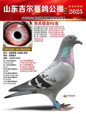 山东吉尔赛鸽秋棚加站赛双关综合鸽王获奖鸽照片