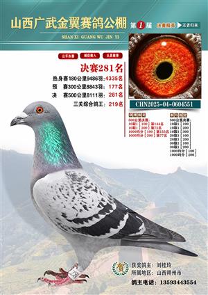 山西广武金翼2025年秋季决赛获奖鸽