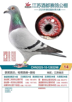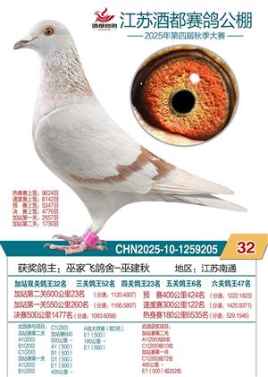 2025年江苏酒都赛鸽公棚加站赛双关鸽王1-96名照片赏析