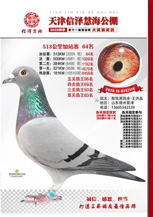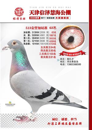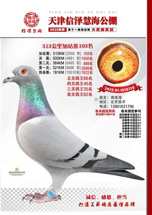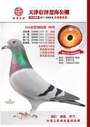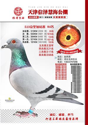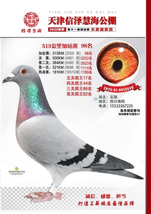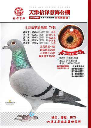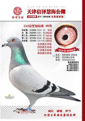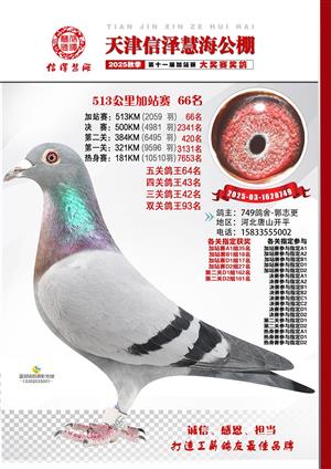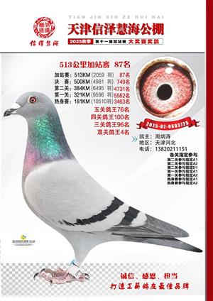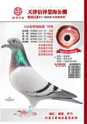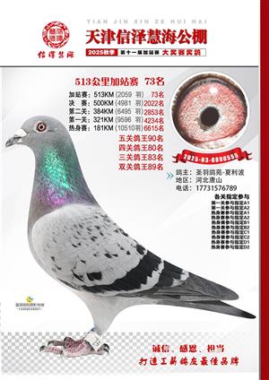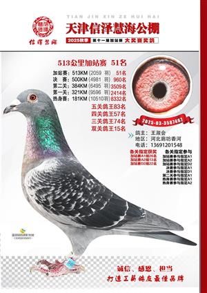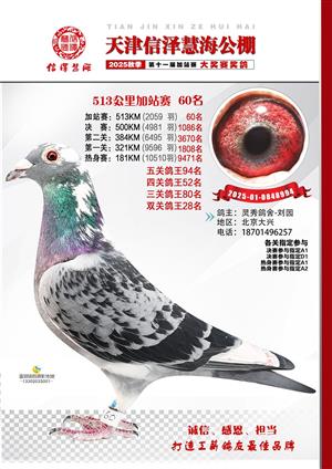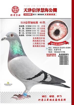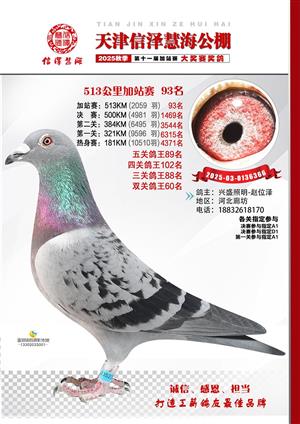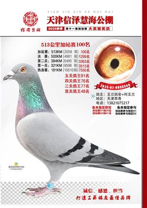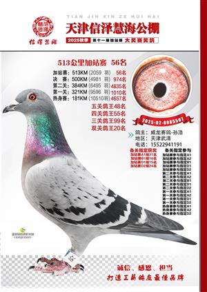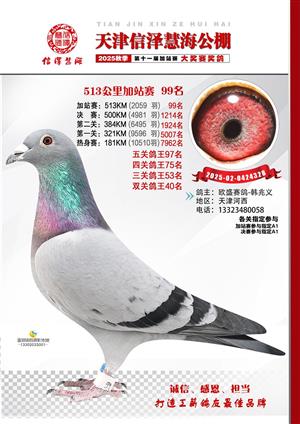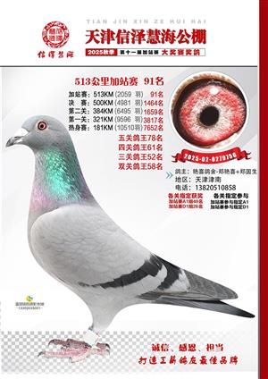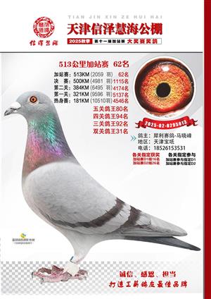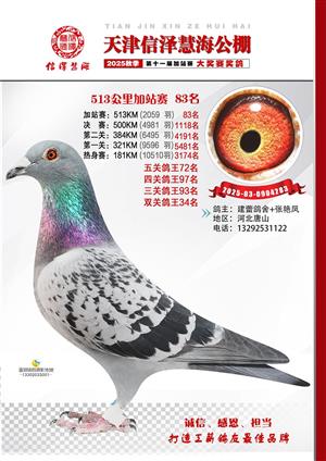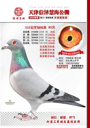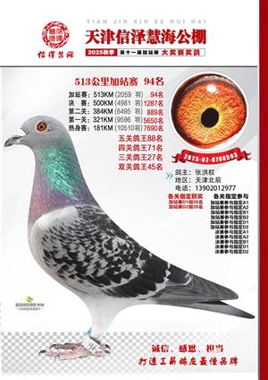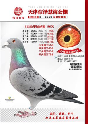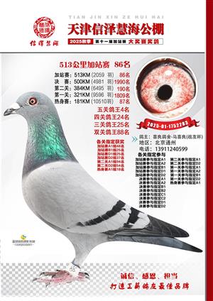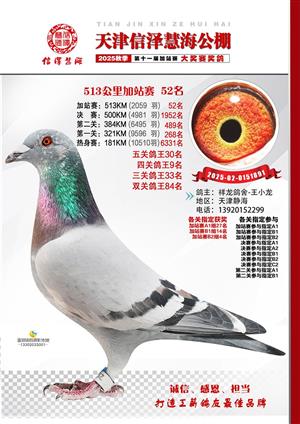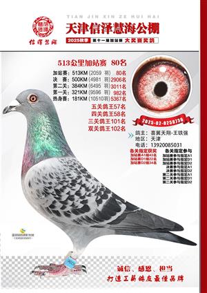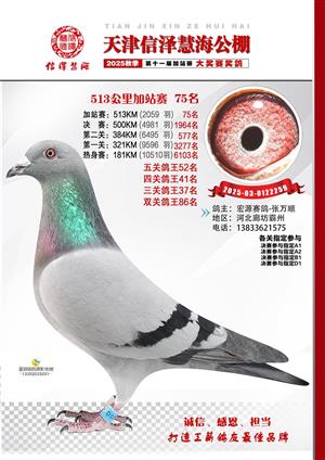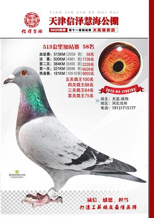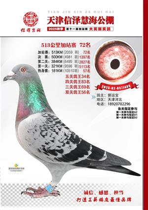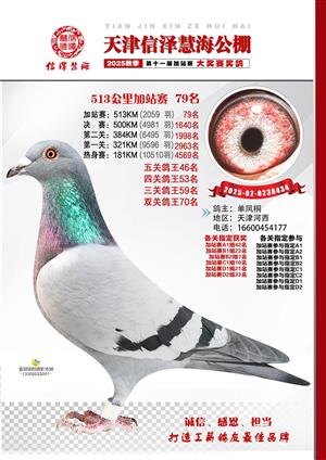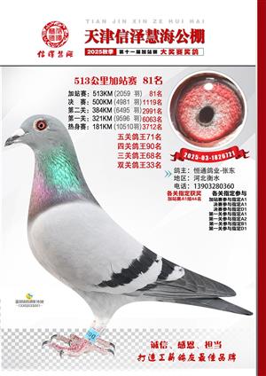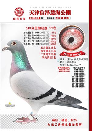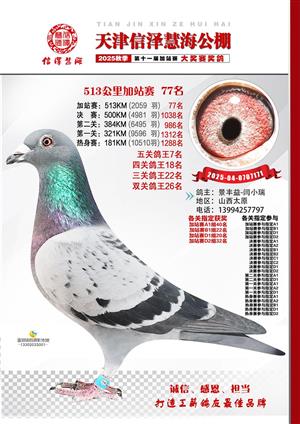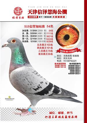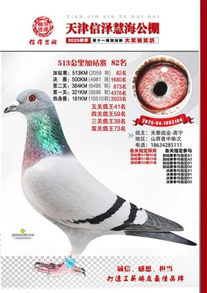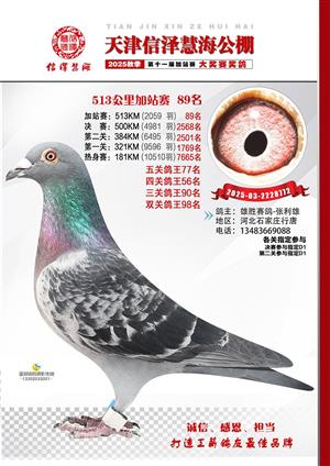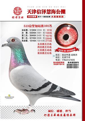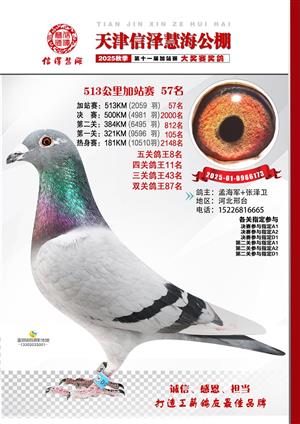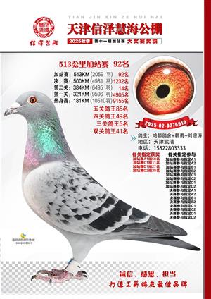 天津信泽慧海公棚2025年加站赛前103名获奖鸽照片