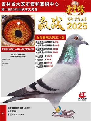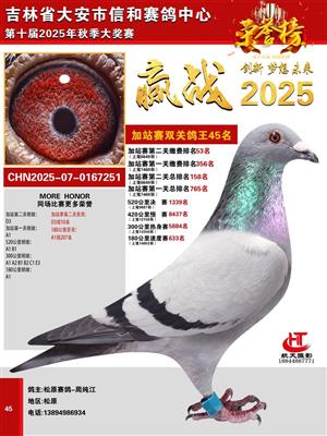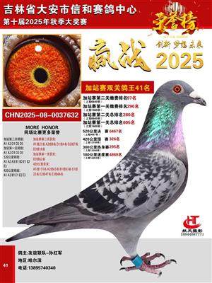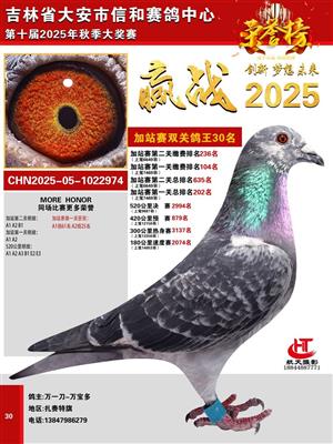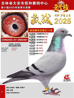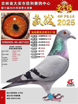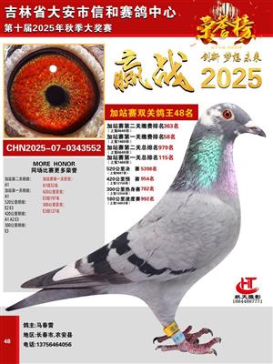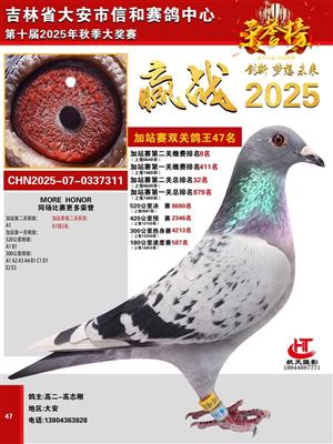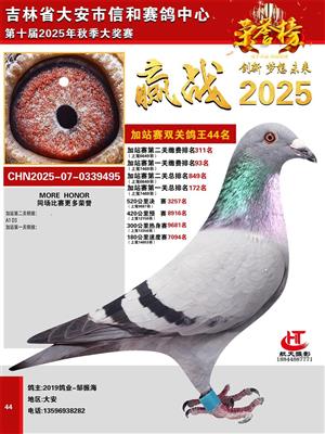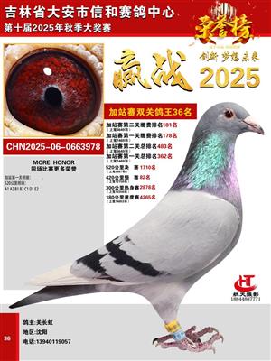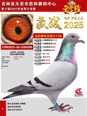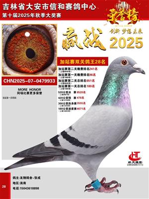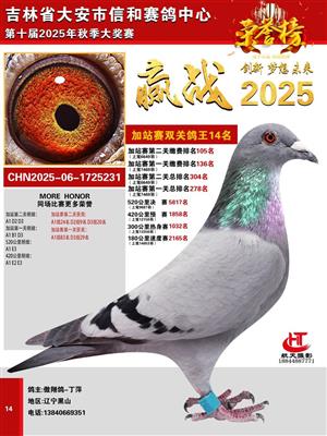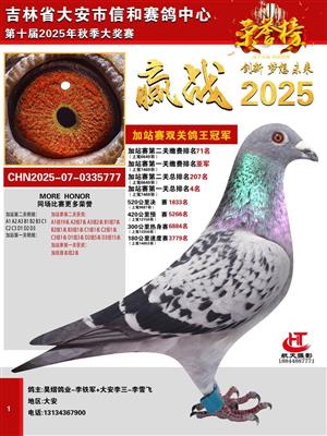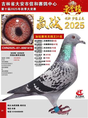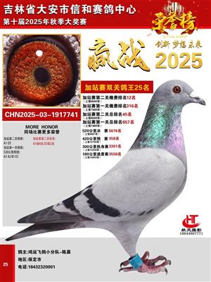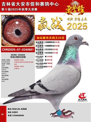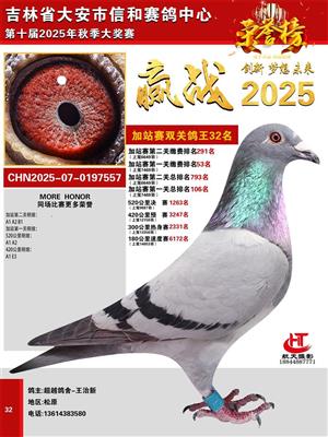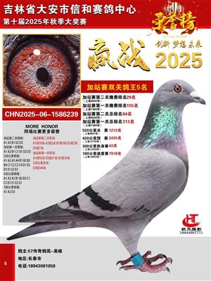 吉林省大安市信和赛鸽中心2025年加战赛获奖鸽照片欣赏