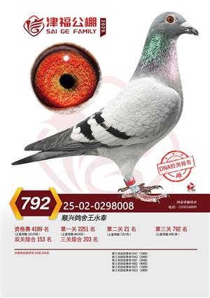 天津津福公棚2025年决赛前800名获奖鸽照片