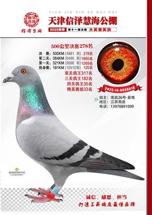 天津信泽慧海公棚2025年决赛前700名获奖鸽照片