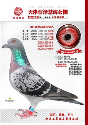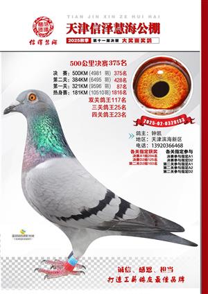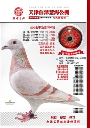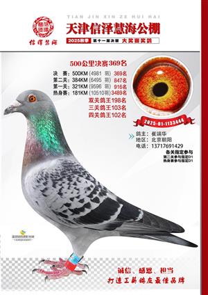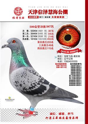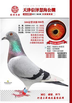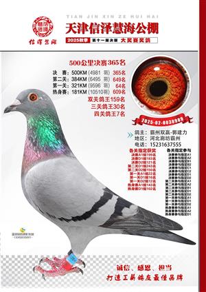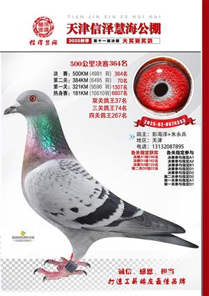 天津信泽慧海公棚2025年决赛前700名获奖鸽照片
