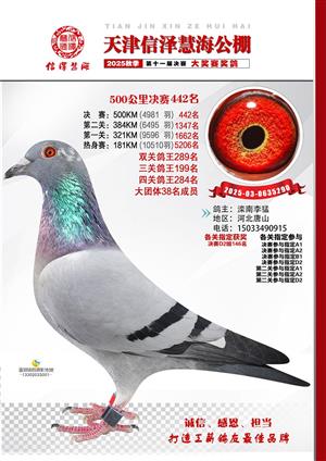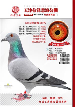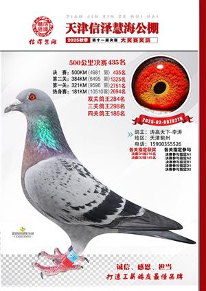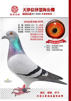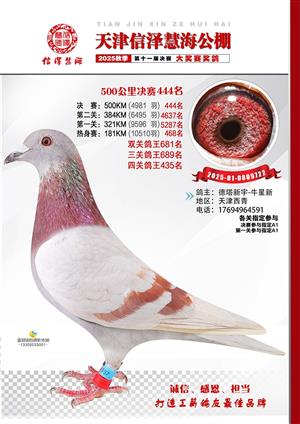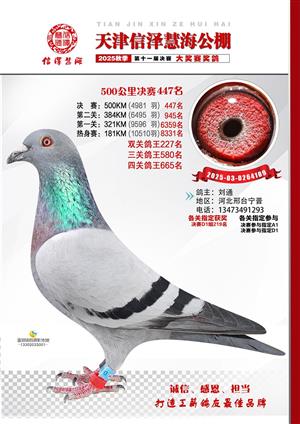 天津信泽慧海公棚2025年决赛前700名获奖鸽照片