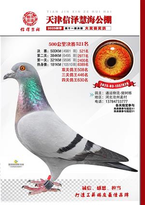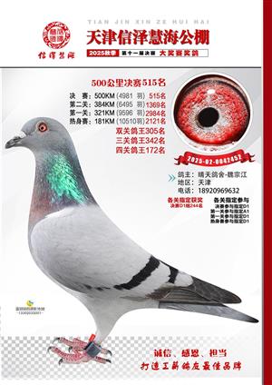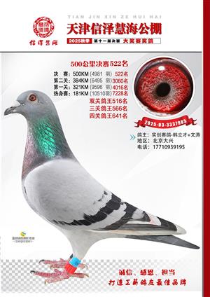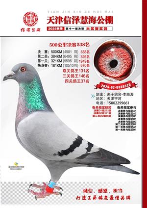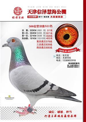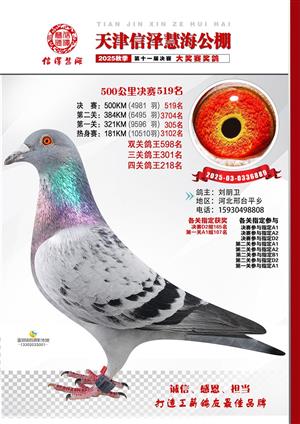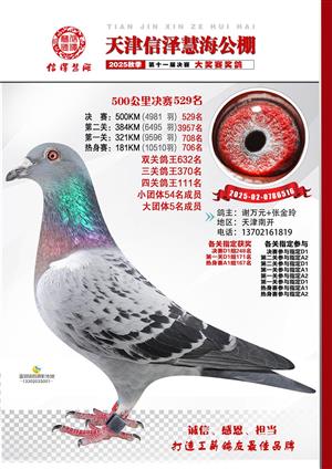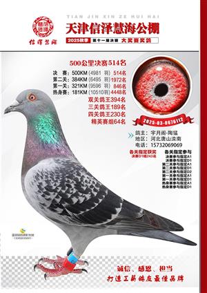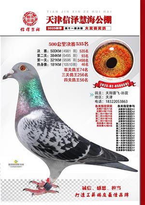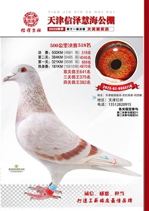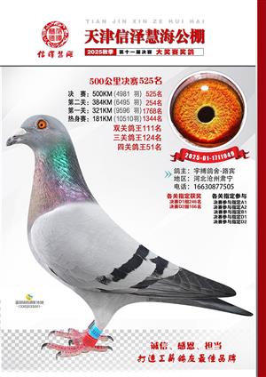 天津信泽慧海公棚2025年决赛前700名获奖鸽照片