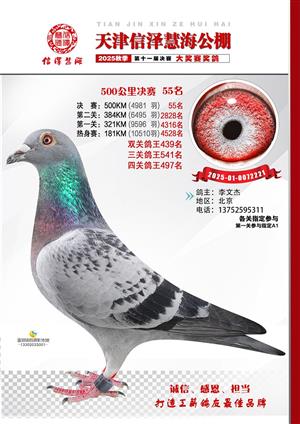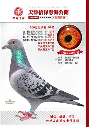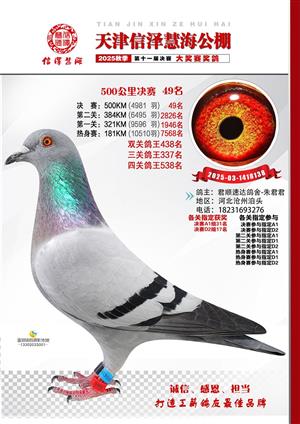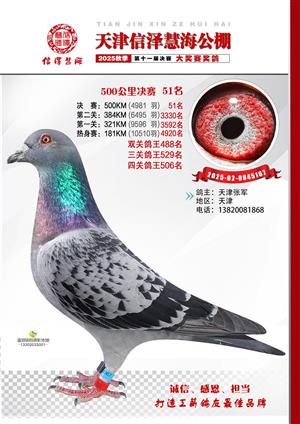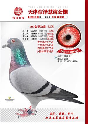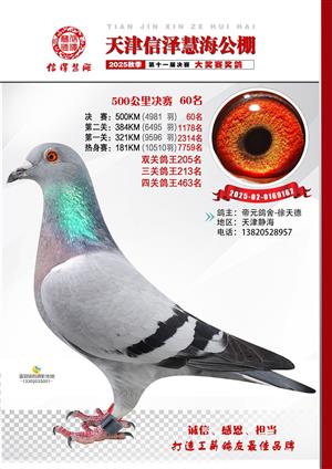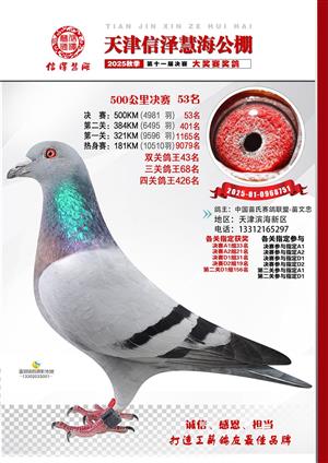 天津信泽慧海公棚2025年决赛前700名获奖鸽照片