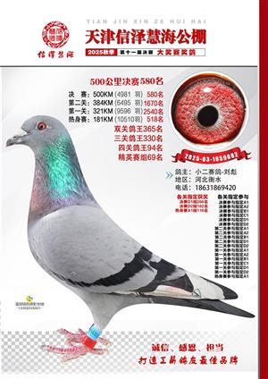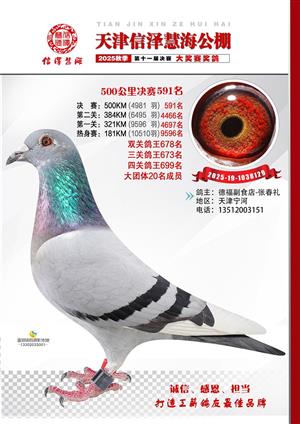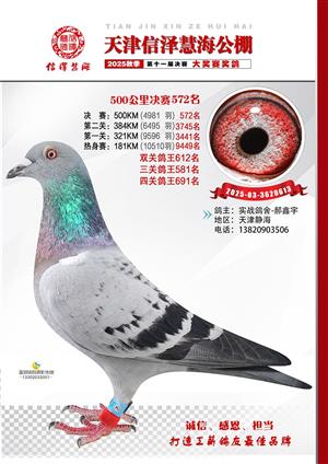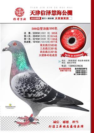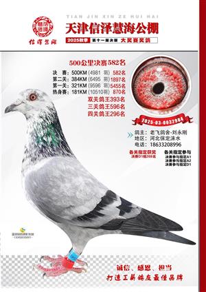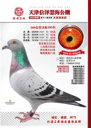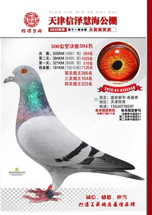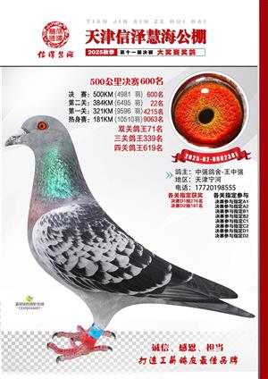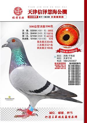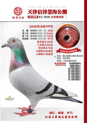 天津信泽慧海公棚2025年决赛前700名获奖鸽照片