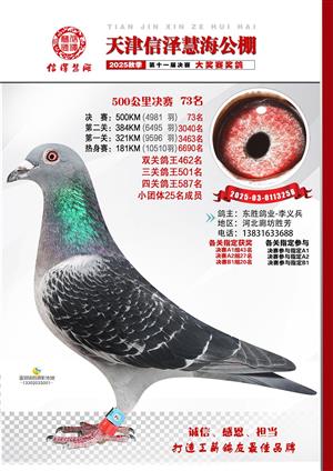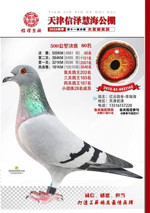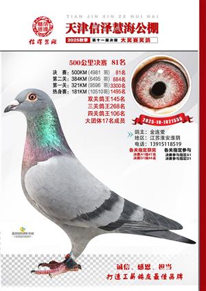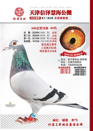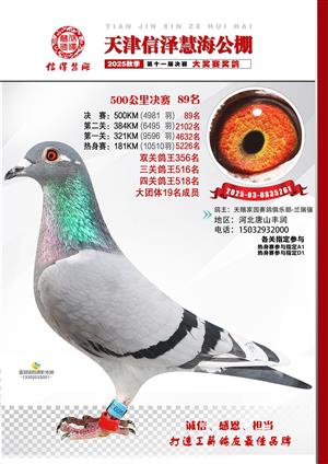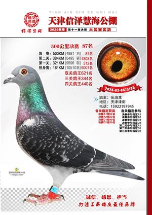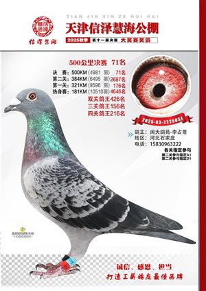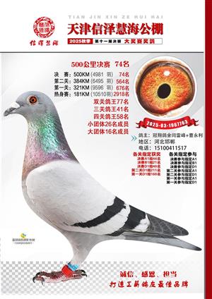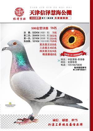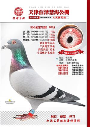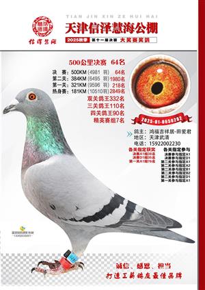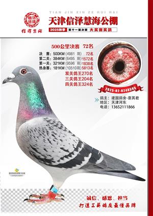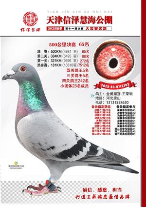 天津信泽慧海公棚2025年决赛前700名获奖鸽照片