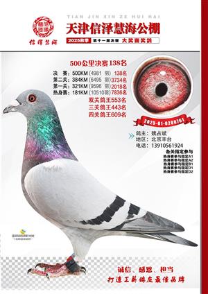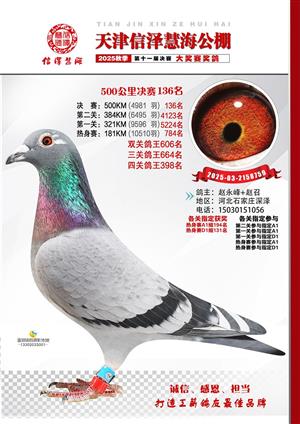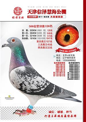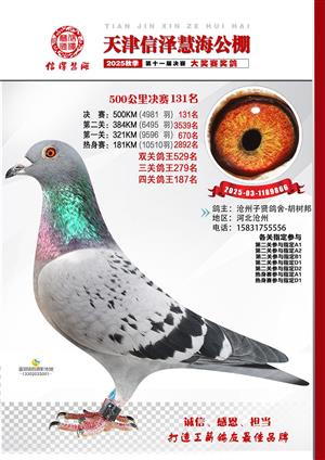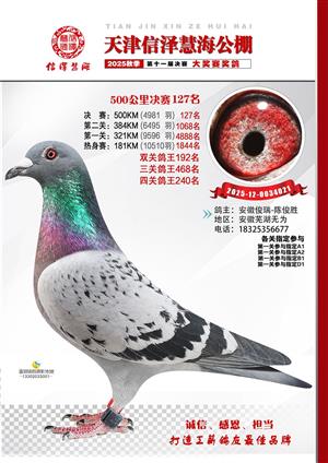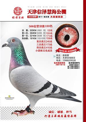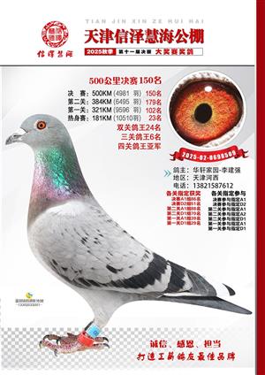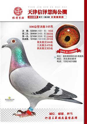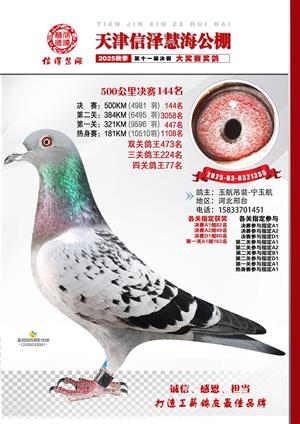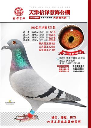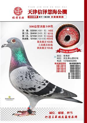 天津信泽慧海公棚2025年决赛前700名获奖鸽照片