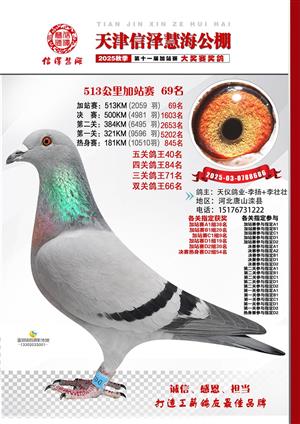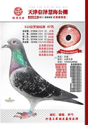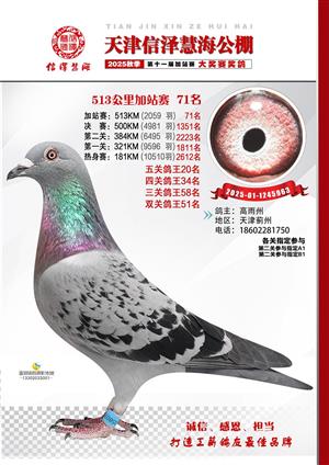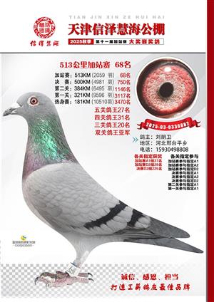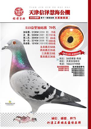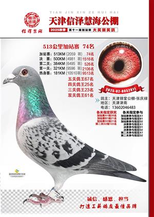天津信泽慧海公棚2025年加站赛前103名获奖鸽照片