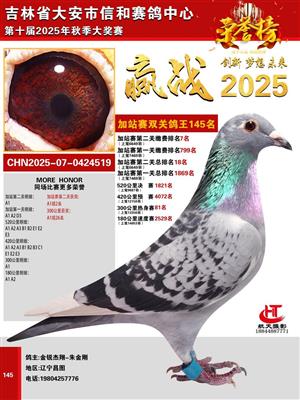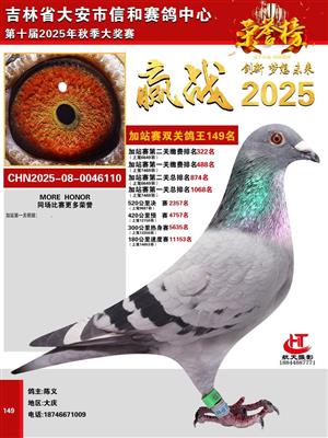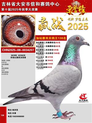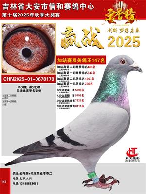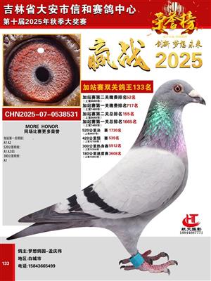 吉林省大安市信和赛鸽中心2025年加战赛获奖鸽照片欣赏