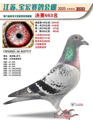 江苏宝宏秋棚2025年决赛获奖鸽照片赏析