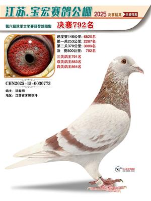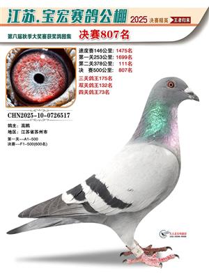 江苏宝宏秋棚2025年决赛获奖鸽照片赏析
