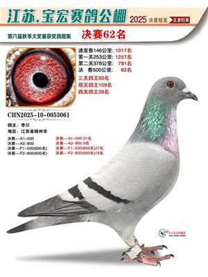 江苏宝宏秋棚2025年决赛获奖鸽照片赏析