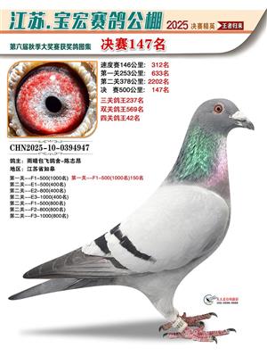 江苏宝宏秋棚2025年决赛获奖鸽照片赏析