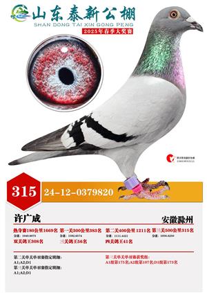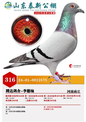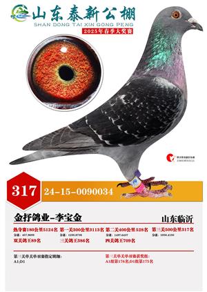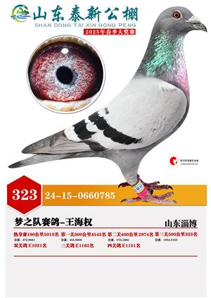 山东泰新赛鸽公棚(春棚)2025年总决赛获奖鸽照片