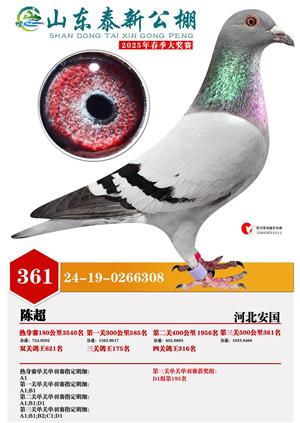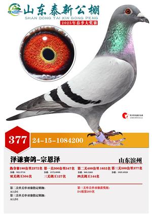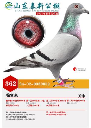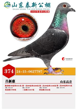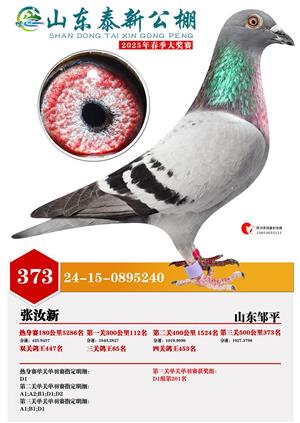 山东泰新赛鸽公棚(春棚)2025年总决赛获奖鸽照片