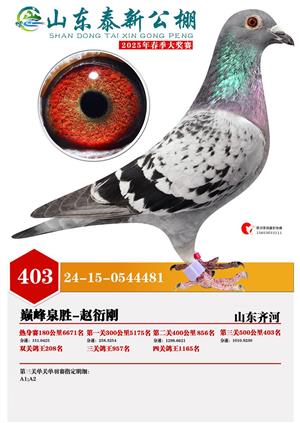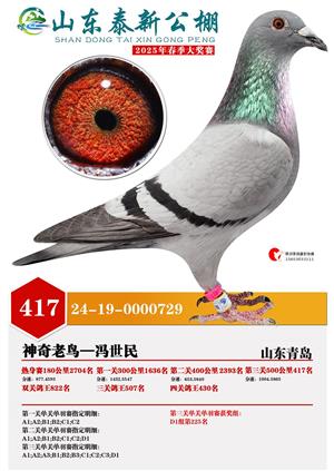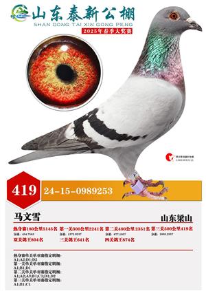 山东泰新赛鸽公棚(春棚)2025年总决赛获奖鸽照片