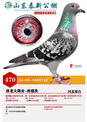 山东泰新赛鸽公棚(春棚)2025年总决赛获奖鸽照片