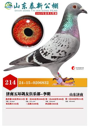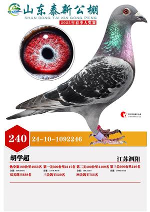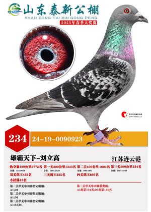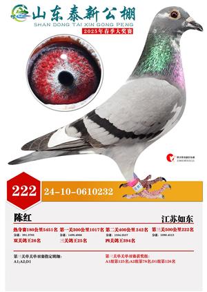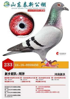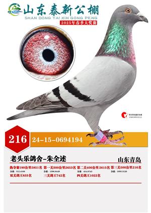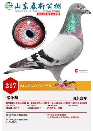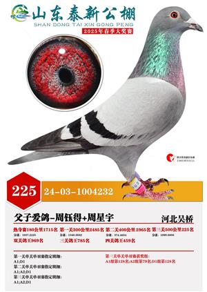 山东泰新赛鸽公棚(春棚)2025年总决赛获奖鸽照片