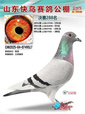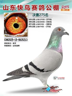 山东快鸟赛鸽公棚 第二届决赛获奖鸽赏析