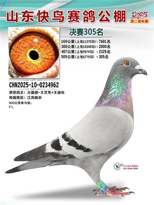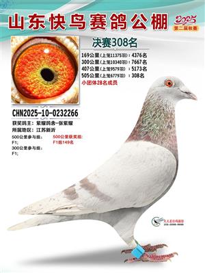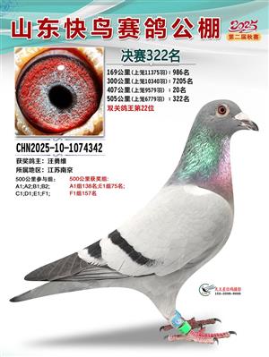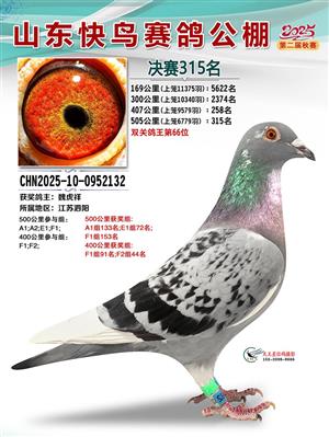 山东快鸟赛鸽公棚 第二届决赛获奖鸽赏析