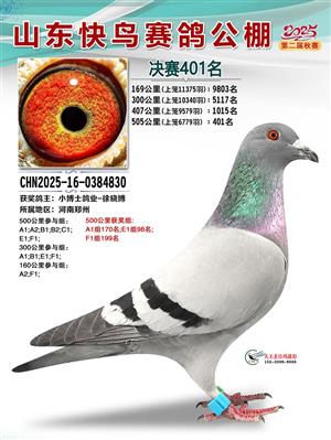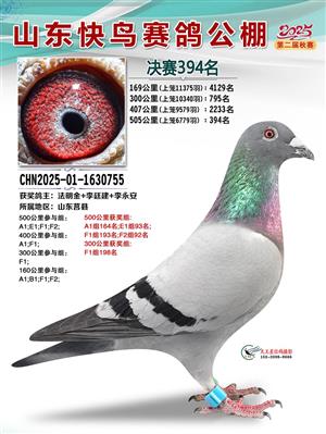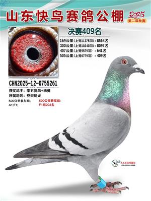 山东快鸟赛鸽公棚 第二届决赛获奖鸽赏析