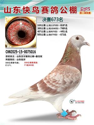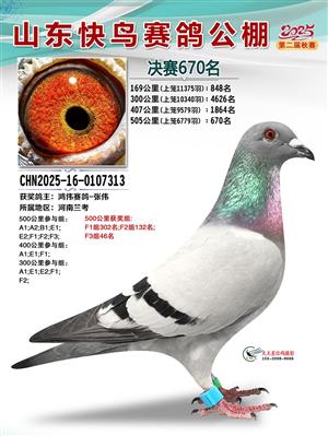 山东快鸟赛鸽公棚 第二届决赛获奖鸽赏析