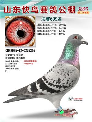 山东快鸟赛鸽公棚 第二届决赛获奖鸽赏析