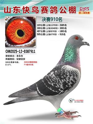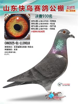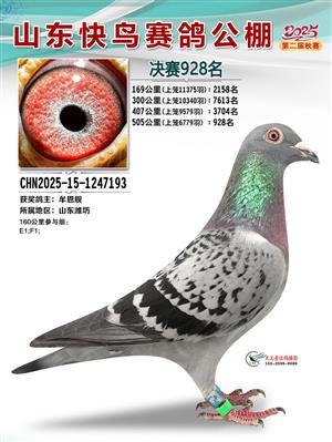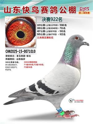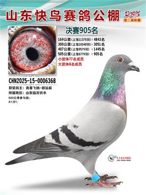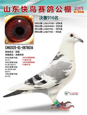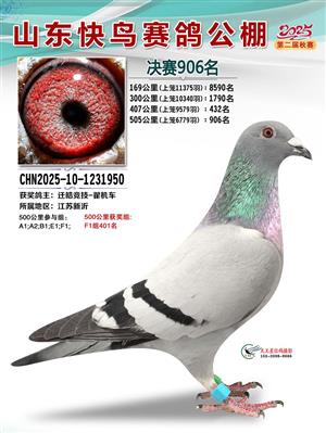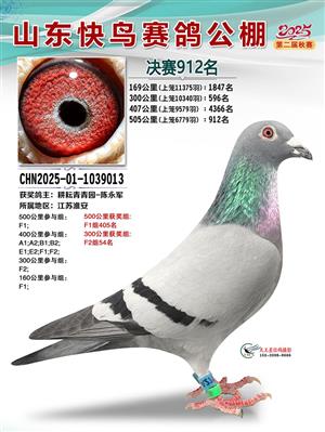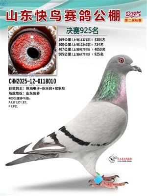 山东快鸟赛鸽公棚 第二届决赛获奖鸽赏析