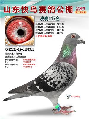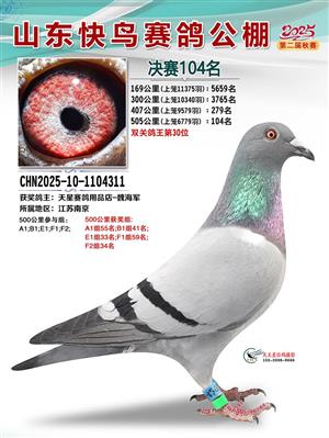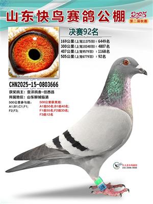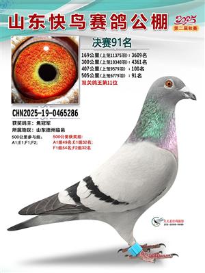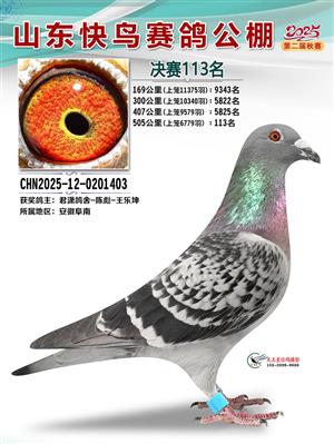 山东快鸟赛鸽公棚 第二届决赛获奖鸽赏析