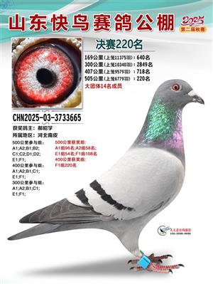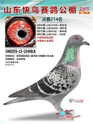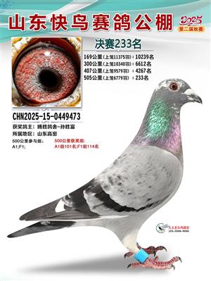 山东快鸟赛鸽公棚 第二届决赛获奖鸽赏析