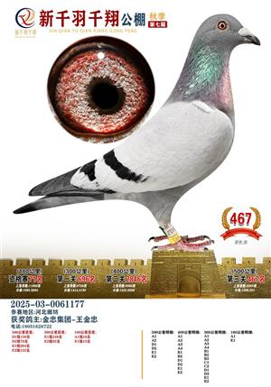 新千羽千翔获奖鸽照片